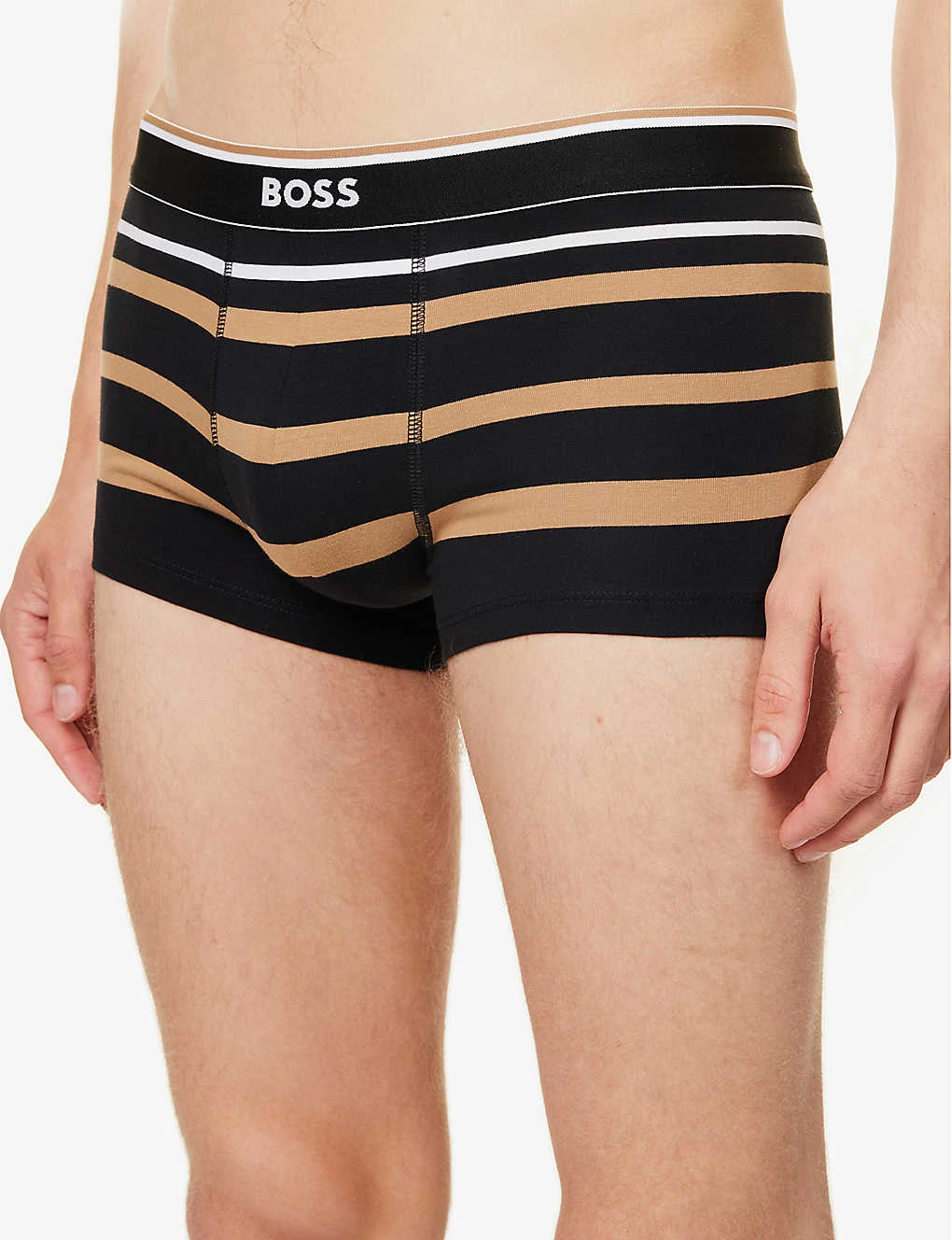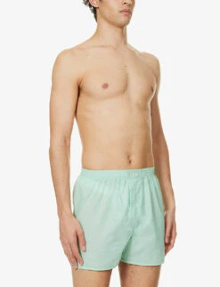 - Classic fit, elasticated waistband, pearlescent buttons, open fly, all-over graphic pattern