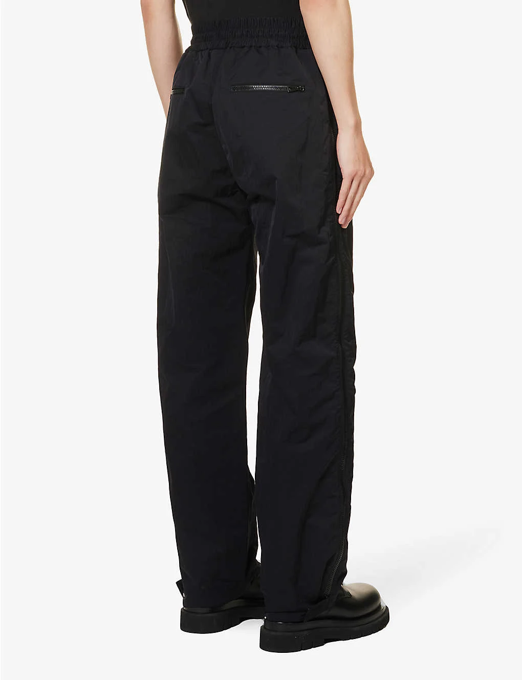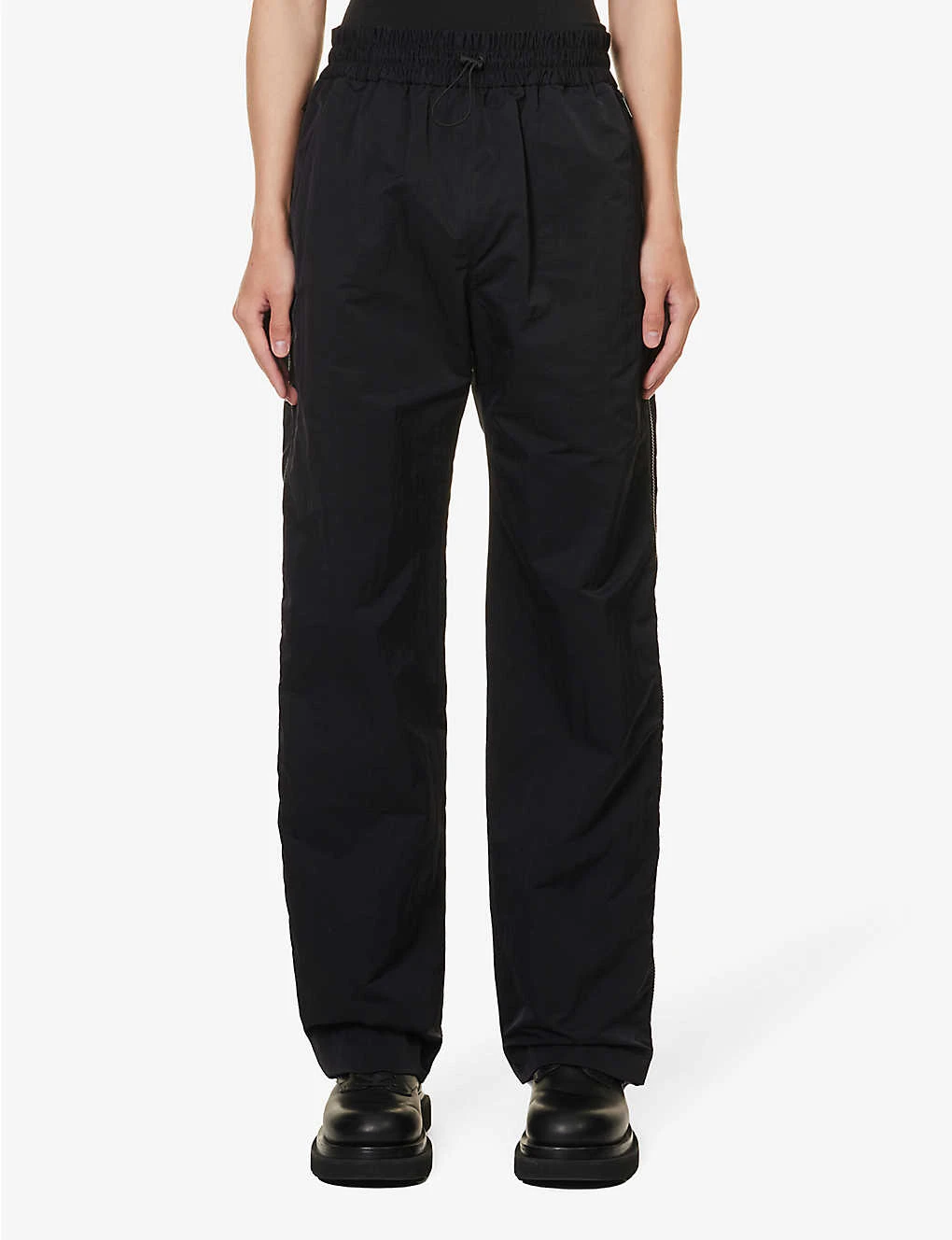 - Relaxed fit, mid-rise, straight leg, elasticated drawstring waistband, contrast zipped panels at sides, two zipped pockets at back, branded hardware, adjustable cuffs