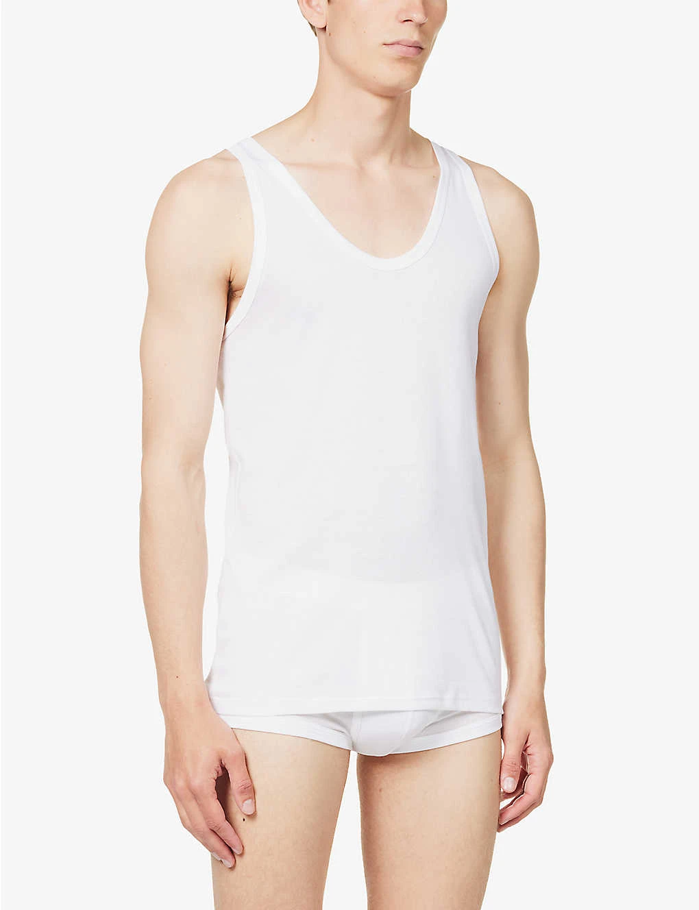 - Relaxed fit, low crew neck, sleeveless, straight hem
