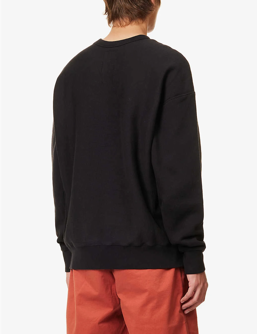 - Relaxed fit, crewneck, long sleeves, branded applique at sleeve, brand patch at side, ribbed panels at sides and sleeves, brushed interior, ribbed trims
