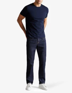 - Regular fit, crewneck, ribbed trim at neck, short sleeves, brand print at front