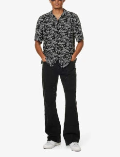 True Religion Label-print Camp-collar Regular-fit Rayon Shirt