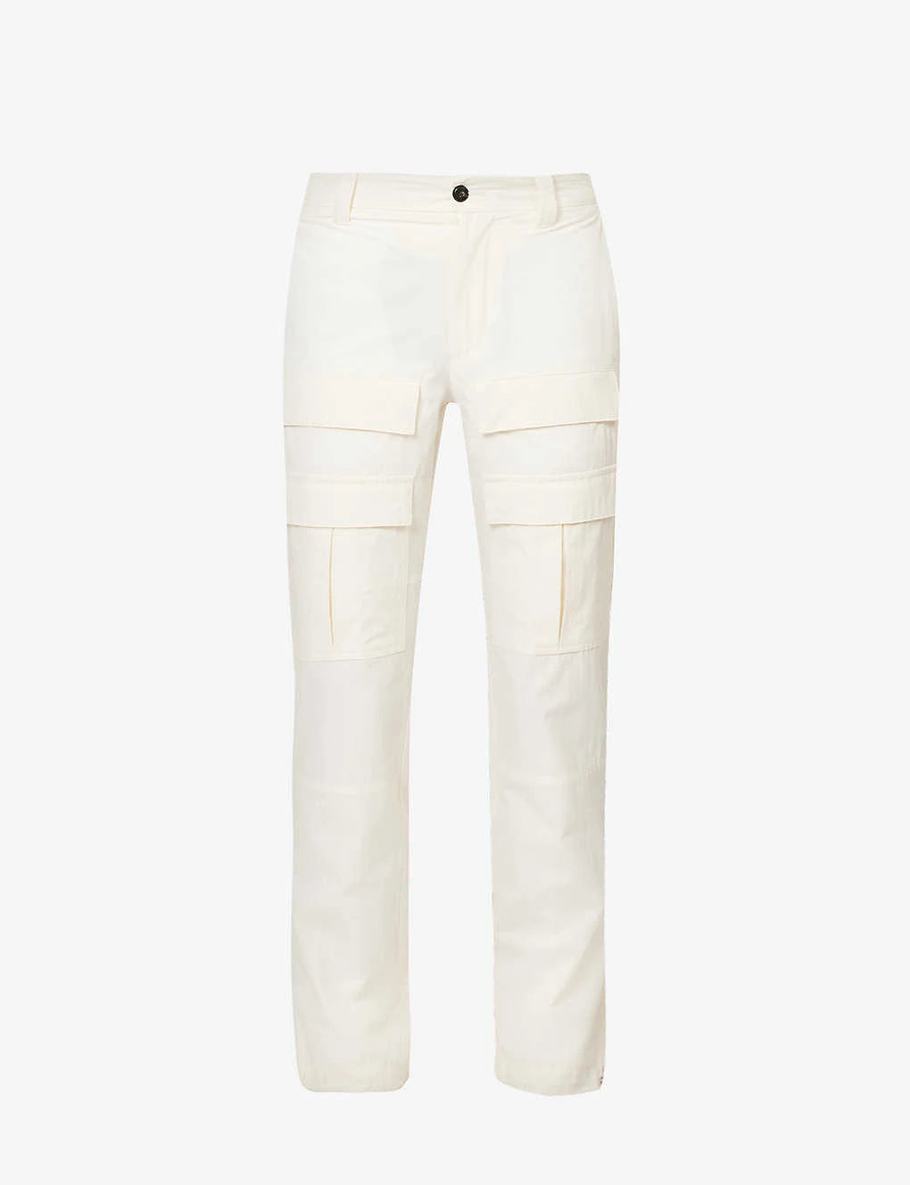 - Regular fit, mid-rise, tapered leg, belt loops, two slip pockets at front, four flap pockets at leg, two flap pockets at back, adjustable cuffs