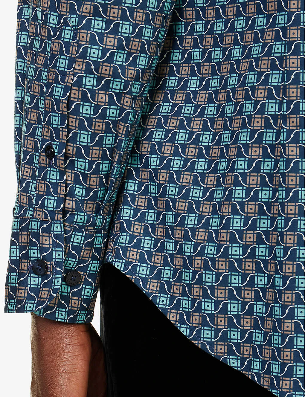 - Regular fit, long sleeves, pleated cuffs, branded buttons, all-over graphic design, curved hem