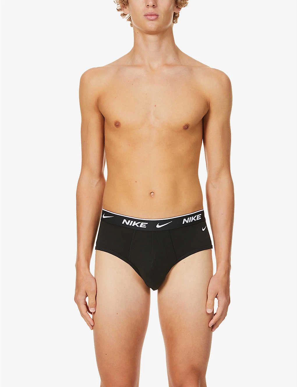 - Mid-rise, elasticated branded waistband, supportive pouch at front