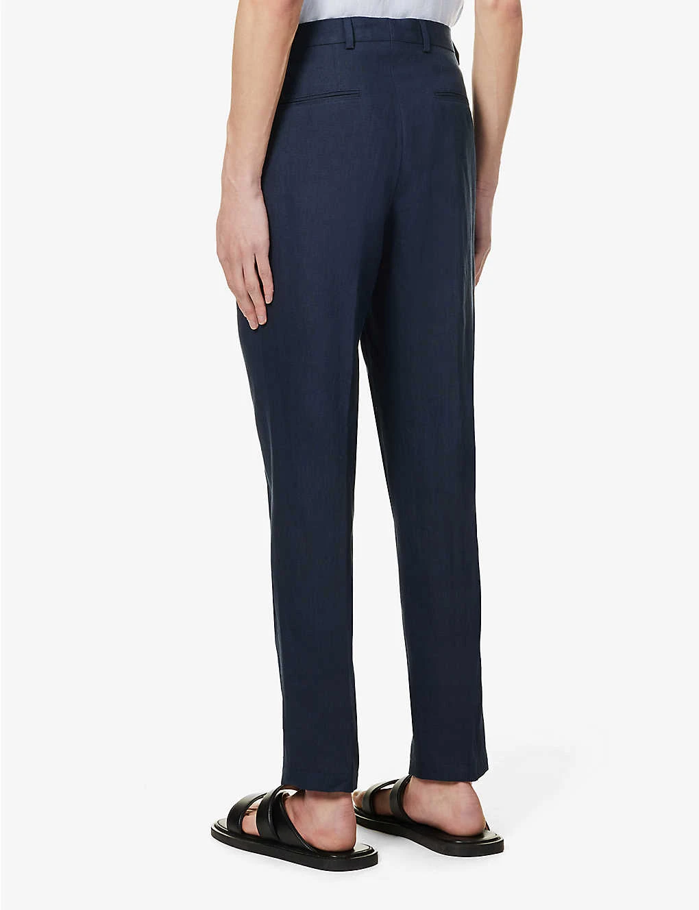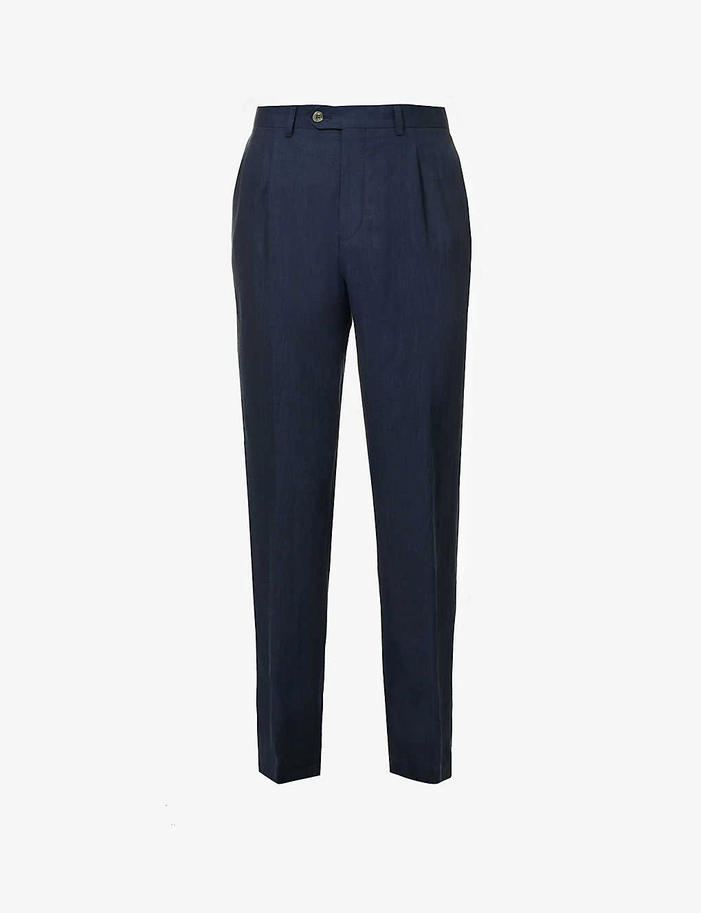 Oscar Jacobson Delon Knife-pleated Tapered-leg Regular-fit Linen Trousers