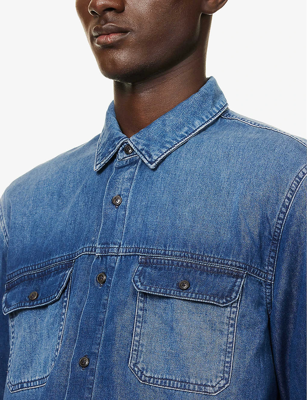 - Regular fit, long sleeves, two buttoned flap pockets at chest, faded wash, curved hem