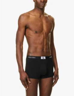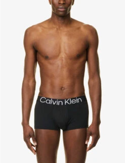 Calvin Klein Branded-waistband Mid-rise Pack Of Three Stretch-cotton And Recycled-polyester Trunks