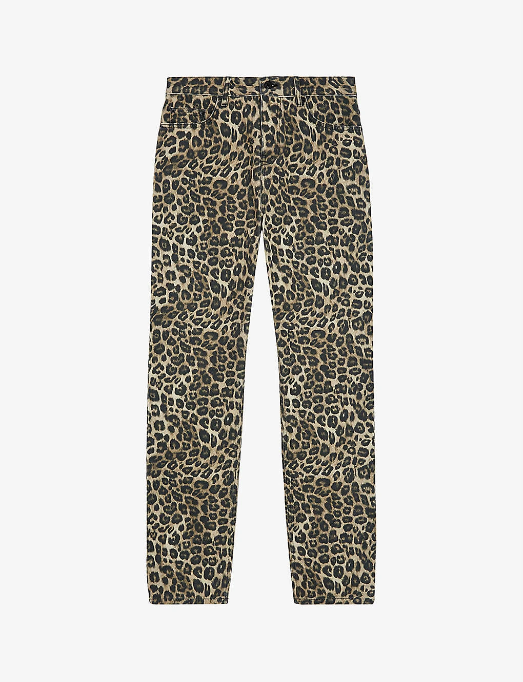 - Classic fit, belt loops, five-pocket design, straight leg, all-over leopard print