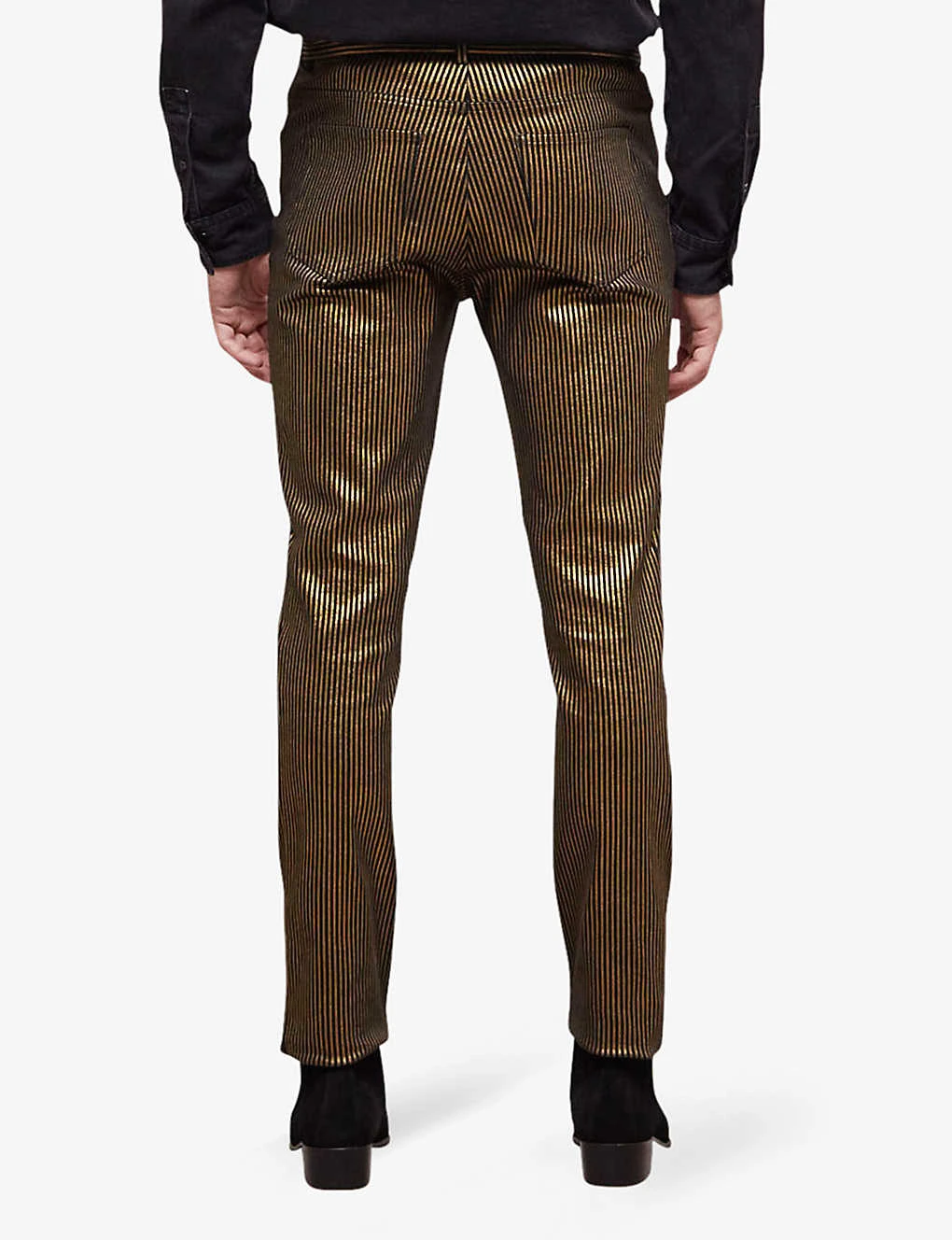 - Slim fit, mid-rise, stretch, stripe-pattern, five-pocket detail, straight leg