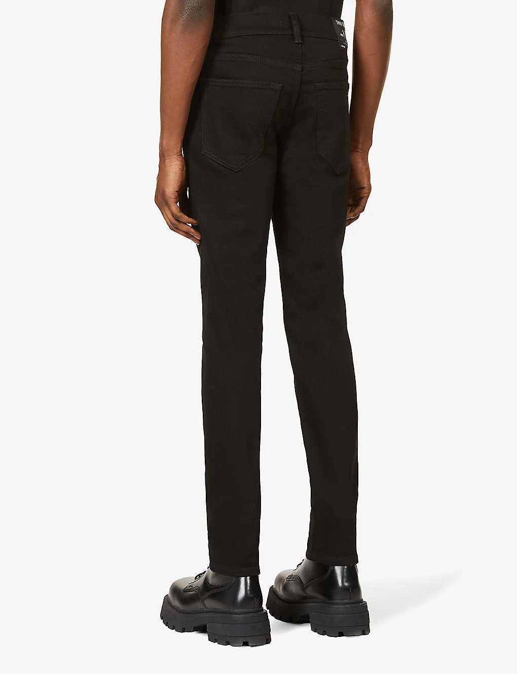 - Regular fit, mid rise, slim leg, belt loops, five pockets, branded hardware, V-shaped yoke at back, brand patch at back pocket